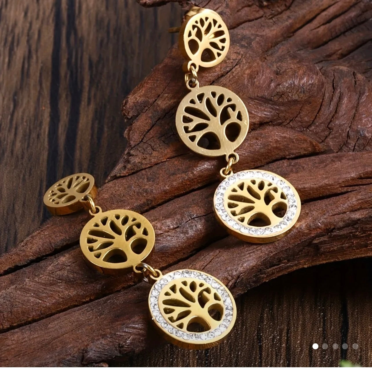 Bohemian Tree of Life Pendant Earrings.Stainless Steel 18 kt gold plated