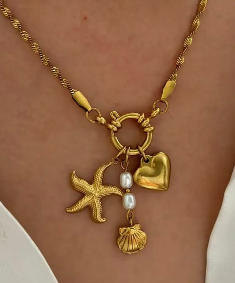 Boho Stainless steel Necklace with detachable exchangeable charms 18 kt gold plated