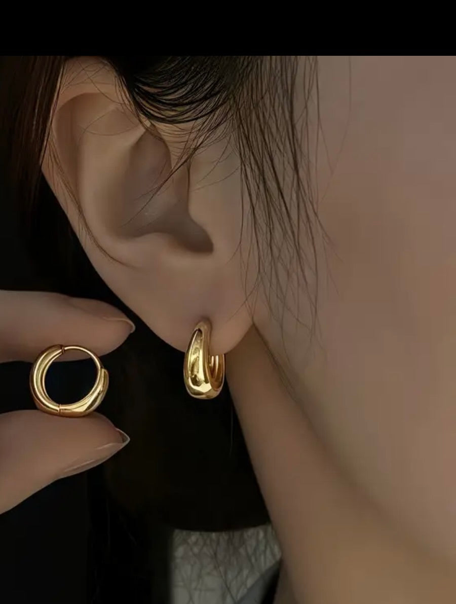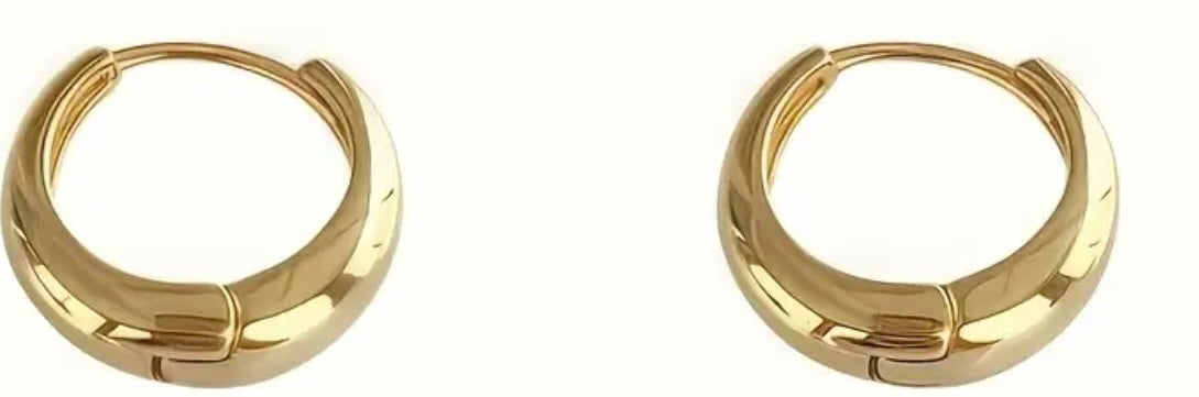Cute pair of small unisex Stainless Steel French-style hoop earrings 14 kt Gold plated