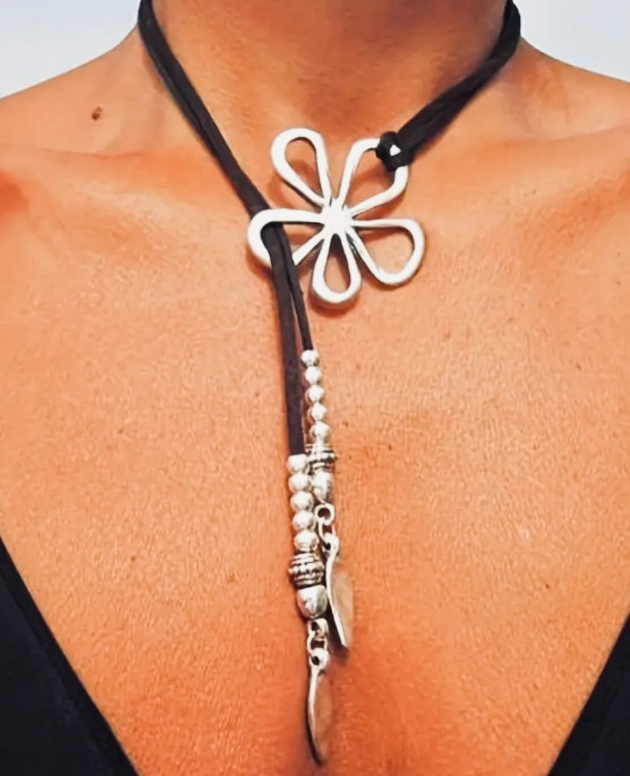 Bring a splash of joy to your style with the Flower Power choker necklace. At 52 cm long, it rests comfortably on your neck, featuring a delightful 5.1 cm flower pendant that adds a fun and lively touch to any ensemble. Crafted from PU leather, it’s the perfect way to brighten your day with a pop of floral charm!