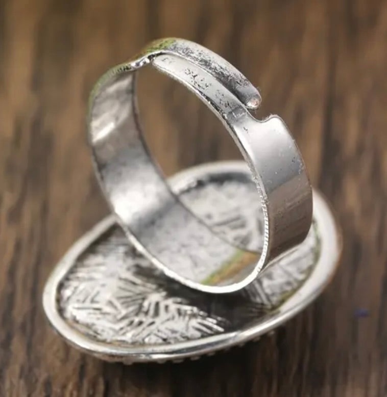 Antique Retro Boho adjustable resin and stainless steel Ring 3 colours available