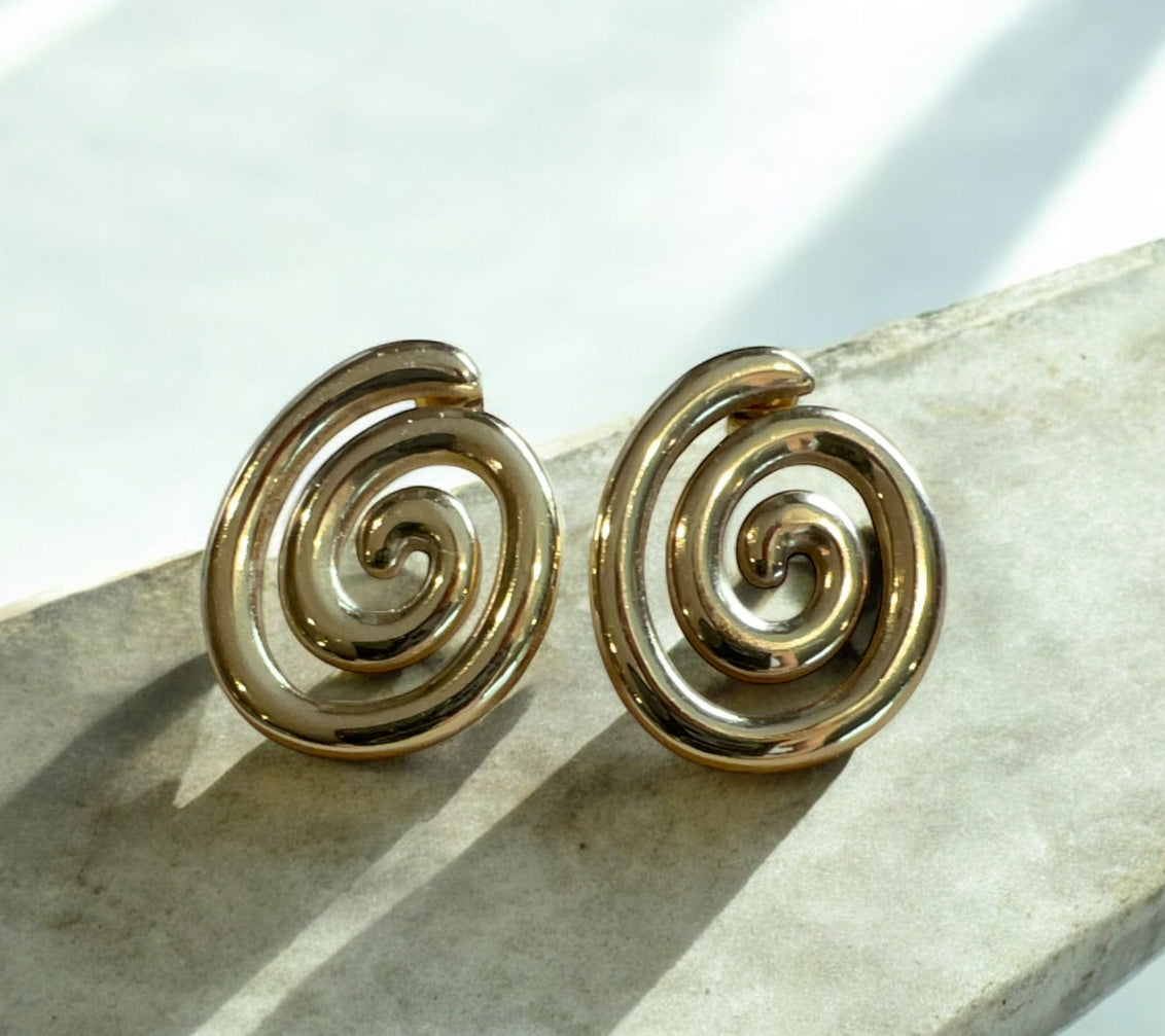 Channel bold 80s vibes with the Spirals of Time Spiral Fern Earrings, crafted in radiant 18kt gold plated stainless steel. Their daring, nature-inspired spiral design adds a striking edge to any look, perfect for making a statement day or night. Lightweight yet finely detailed, these earrings catch the light with a subtle shimmer, elevating your style with confident elegance and a touch of retro flair.